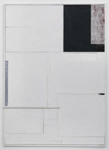 After that I was pleasantly surprised by Florian Schmidt at Zach Feuer (ended June 16), which mixed plenty of obvious references with something new and a bit fragile. The “canvases” are more like collages of vinyl and cardboard and wood. They are pieced together in a way that makes you aware of their fragility and low gloss. These were anti-Jacob Kassay structures, no shimmer or sheen, with Bontecou and Nevelson at their core. Fontana ripped the pure surface, Auerbach dissected and remade it to her exacting specifications and Schmidt simply built a new surface out of the kitchen sink.