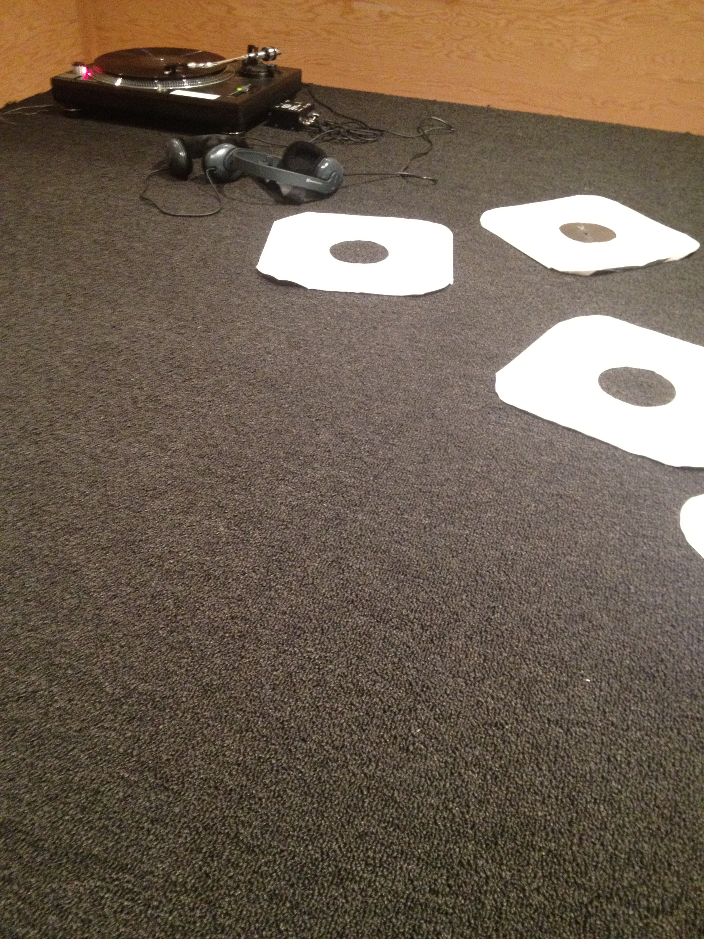 A turntable and headphones, sitting dormant waiting for you to engage it, in An Ear to the Sounds of Our History “uses samples from Hayes’s collection of spoken-word records”. I sat listening to these records in snippets hearing out of place lectures and histories. The blankish room and the record’s verbal drone made me think of being a willing captive, like Hearst. The more I saw of the show the more I thought that An Ear was pure in the way that Yard (Sign) is pure. These words are presented again, not Hayes or ours, but for us to see and hear. We choose to absorb them anew, though they are not new at all.